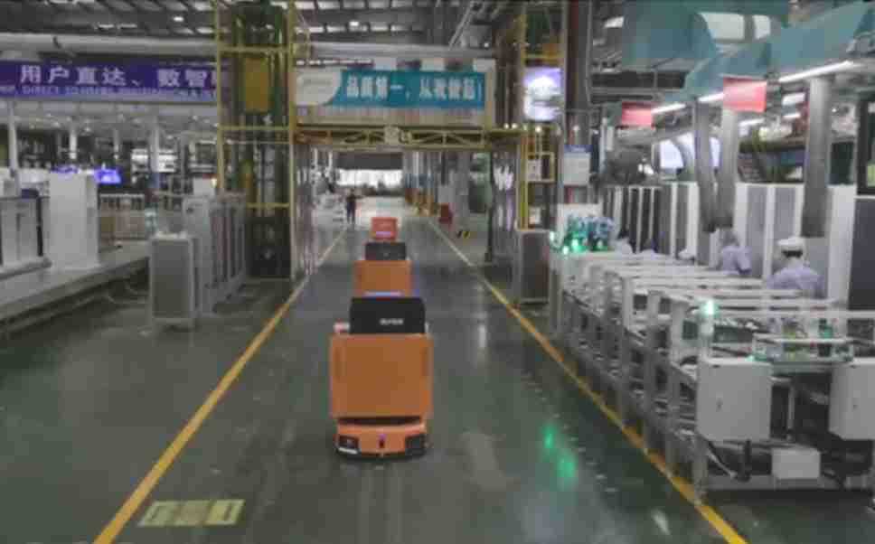 为车载冰箱物流配送打造的智能解决方案,,,,包含产中物流通过潜伏举升AMR搬运至线边,,产后成品物流智能仓储,,流程包含产中物流智能齐套入库,,,线边安灯叫料AMR智能配送至线边,,,成品入库、、出库,,,通过无人堆高车机器人,,,,智能仓储管理替代人工作业管理,,,,实现更高存储、、更高效率、、、、更具柔性化的解决方案。。
